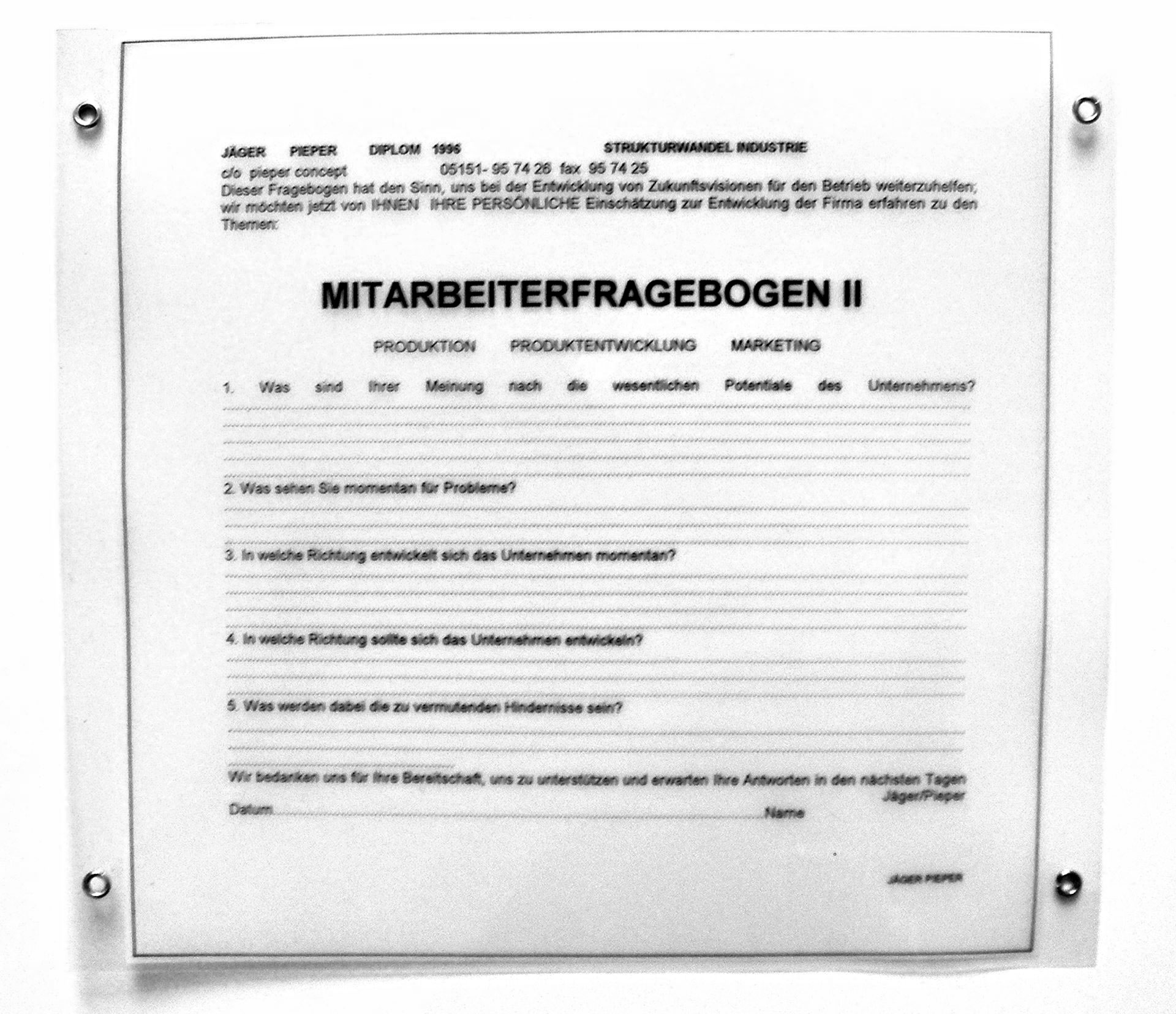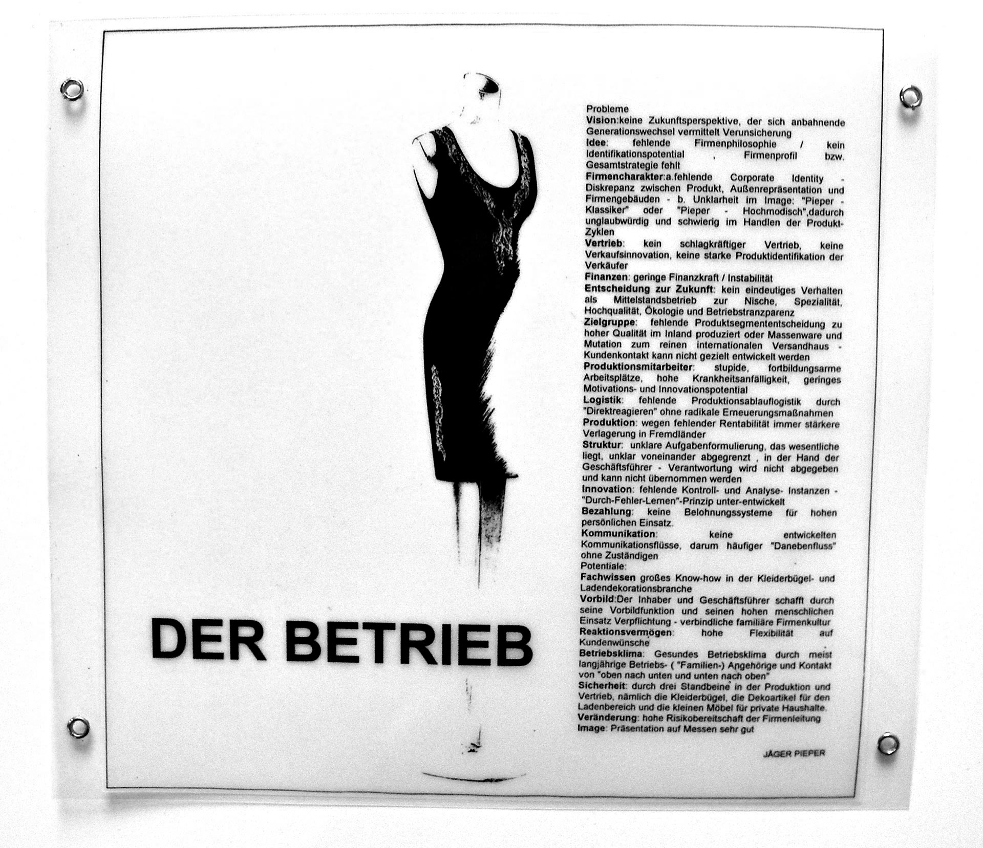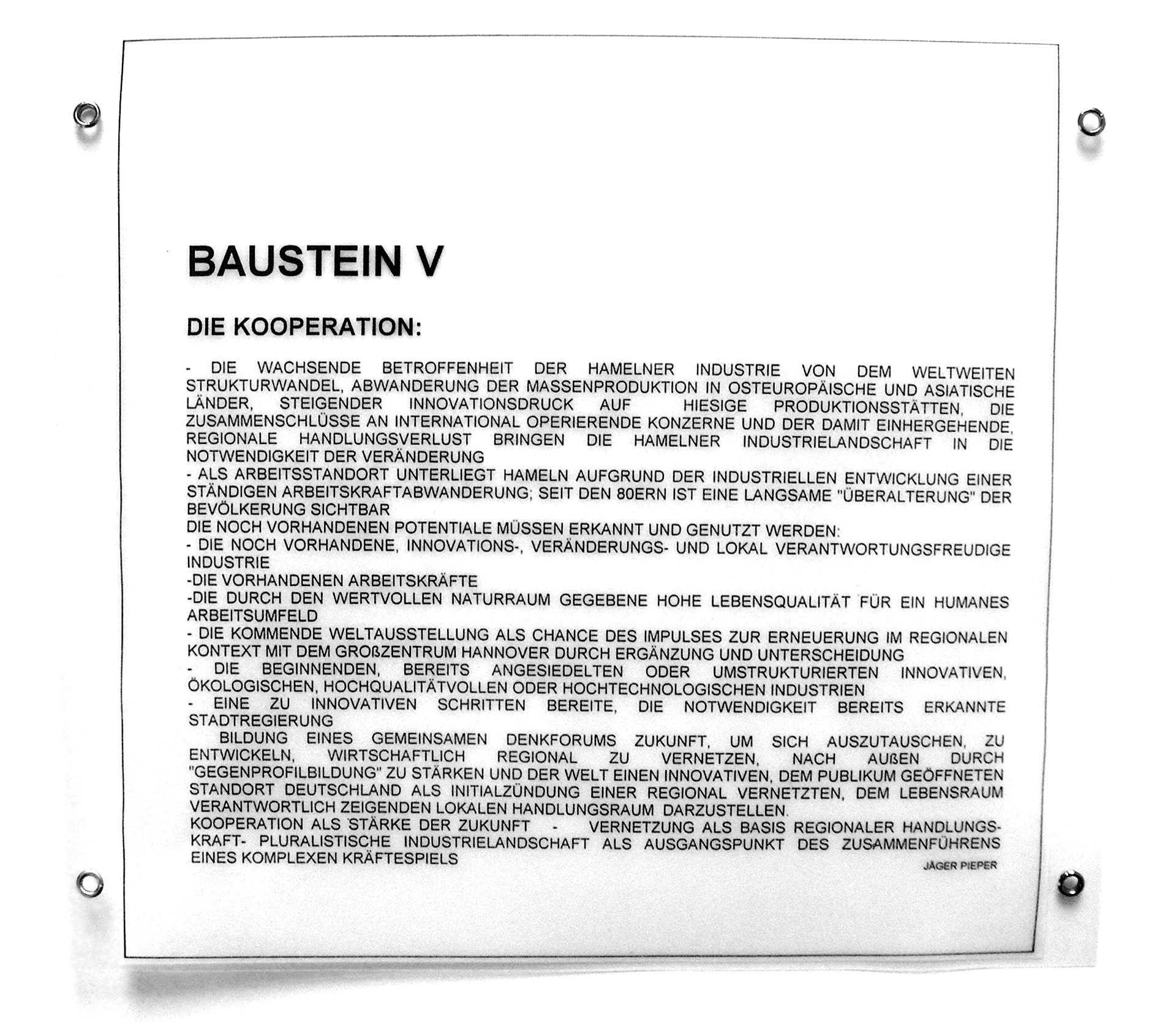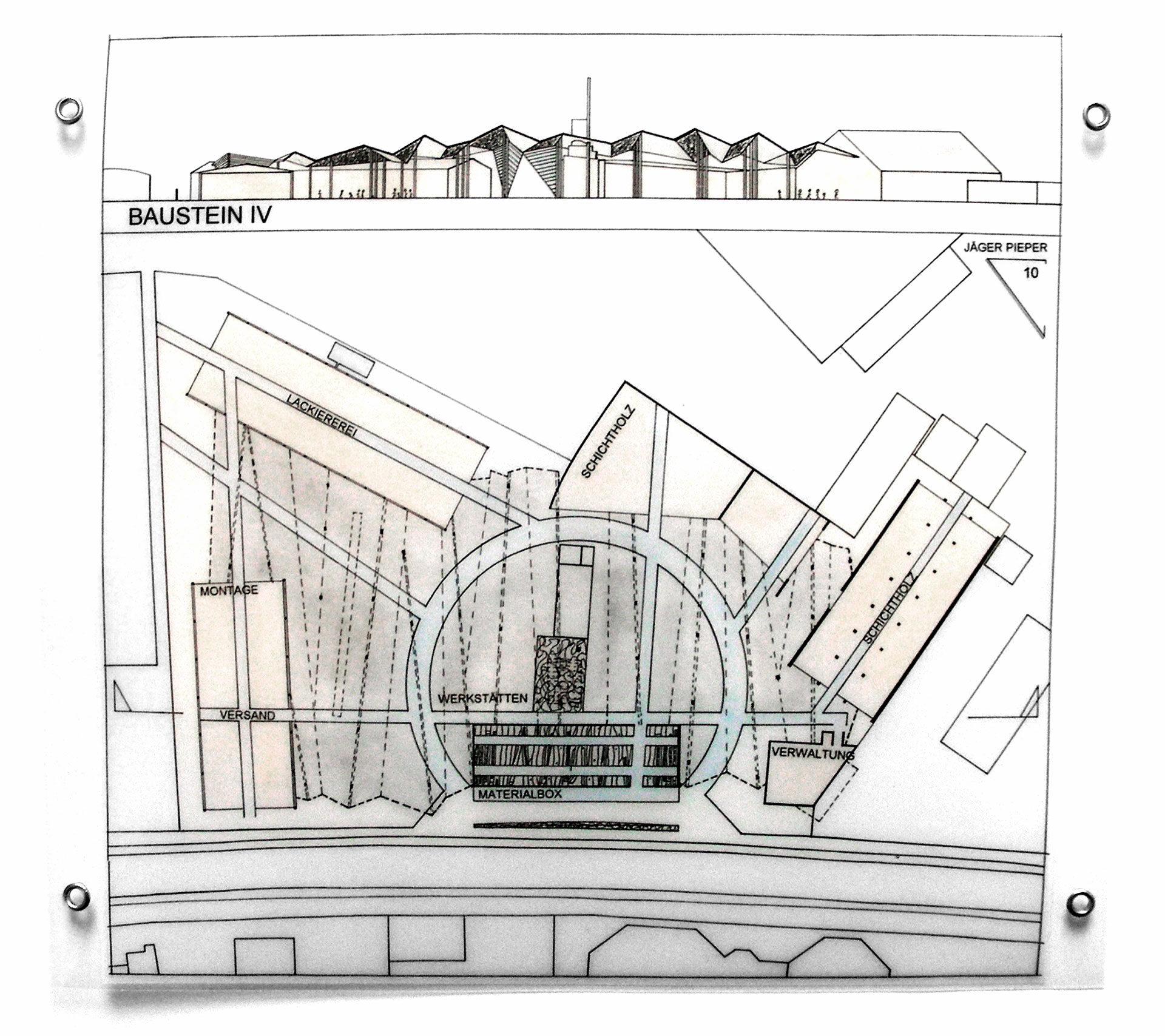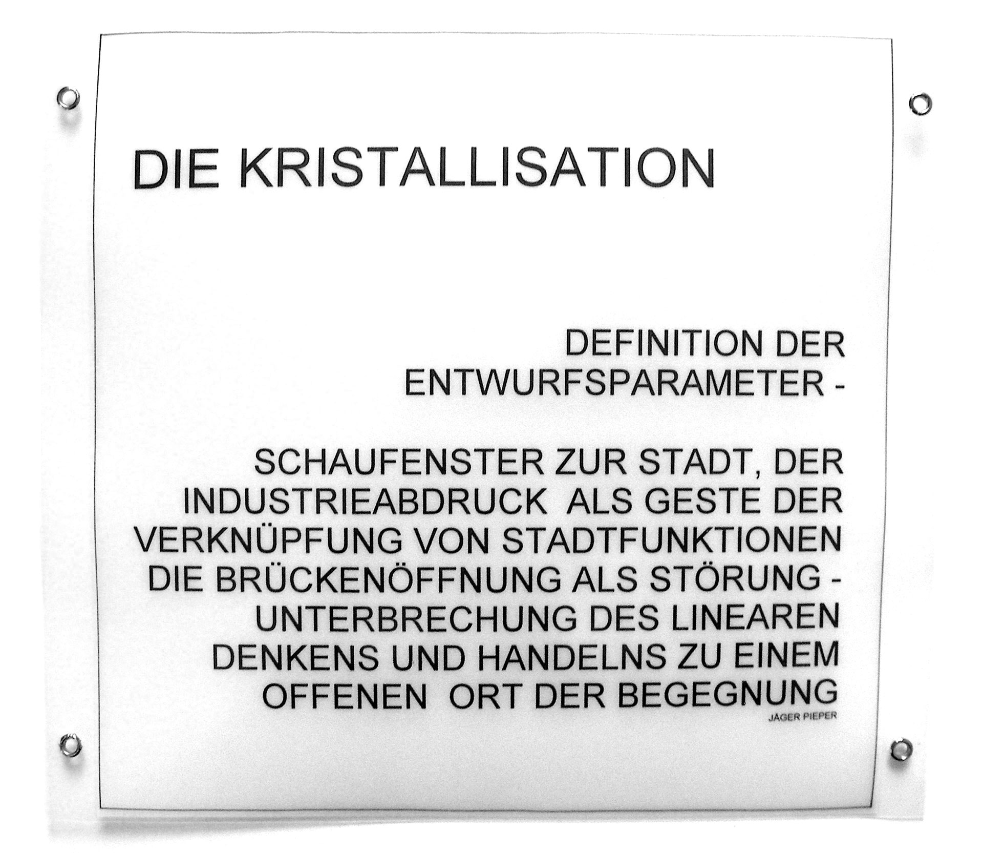Entwurfsforschung und Ideenprojekt. Stadträumliche Analyse, Bestandsanalyse eines Industriebetriebs mit analytischen Zeichnungen, Interviews und Case-Studies; Gebäudeentwurf im Bestand und städtebauliches Projekt als Entwurf mit Entwicklungsszenarien. Ausstellung + Buch (134 S.). jp3_ Dagmar Jäger + Christian Pieper, 1996.