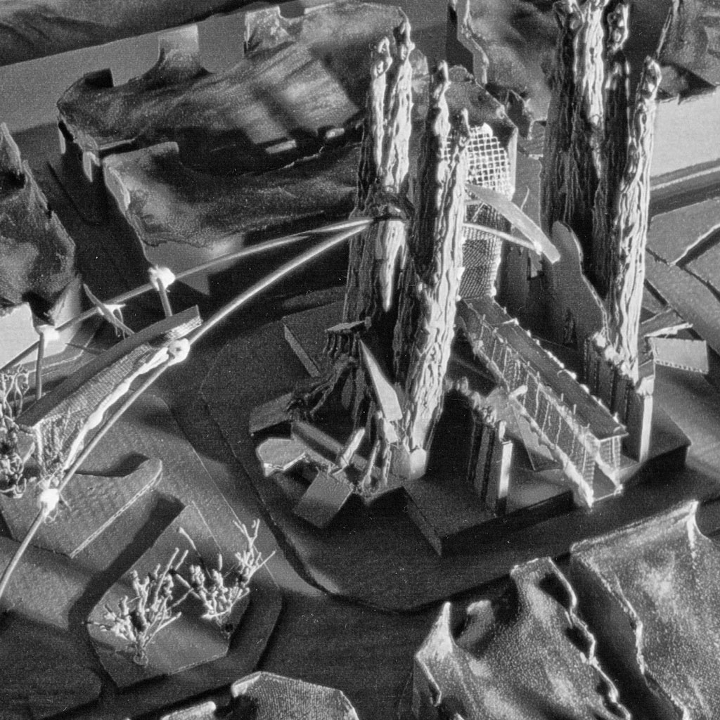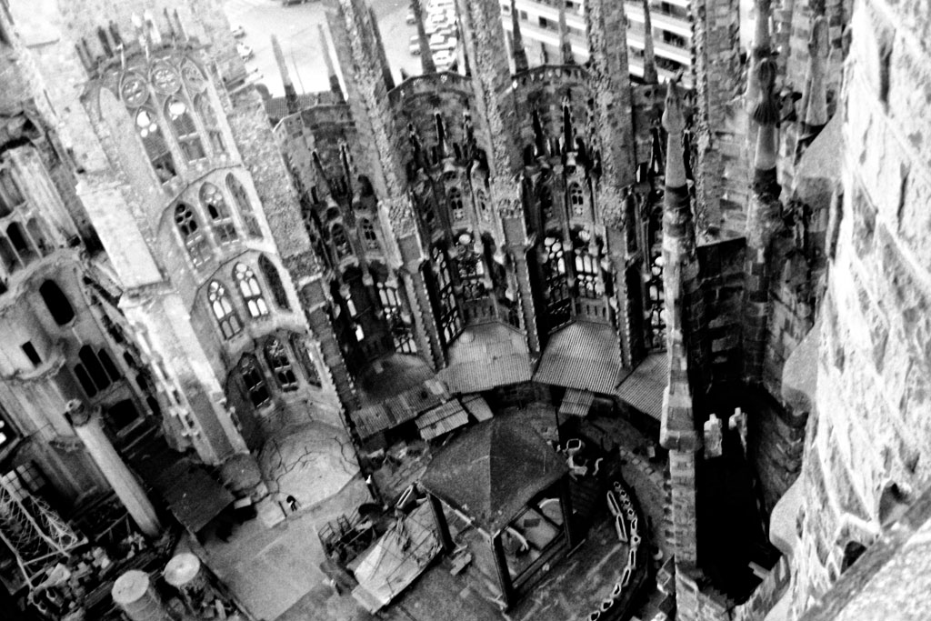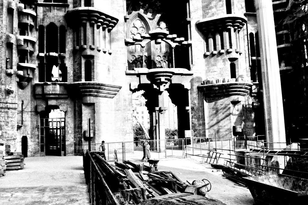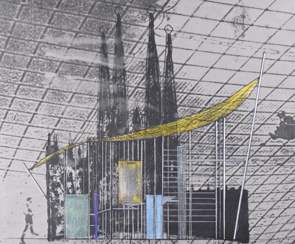 Drei Modelle und vier Skizzen dienen der Annäherung an mögliche Interpretationen als Verwandlungen und aneignende Transformationen des ursprünglichen Entwurfsgedankens. Drei Entwürfe zeigen alternative Positionen (stadt)räumlicher Interventionen in das vorhandene Gefüge des Gebäudes und Stadtraums auf, die jeweils mit unterschiedlichen Konstruktionsansätzen auf den biomorphen Entwurf durch Harmonisierung oder Kontrast zum Entwurfsgedanken Gaudís antworten und zugleich den städtebaulichen Widerspruch in der aktuellen Platzsituation zu beantworten suchen, um einen konzeptionellen Möglichkeitsraum als Beitrag zur Zukunft des unvollenderten Bauwerks aufzuspannen. Eine der drei Varianten wird zuletzt als Ausstellungsraum und sich nach oben entwickelnde Promenade – als 'Ort der Kontemplation in Bewegung' – durchgearbeitet, um einen Ort der Ruhe innerhalb des dichten Stadtrasters zu schaffen.